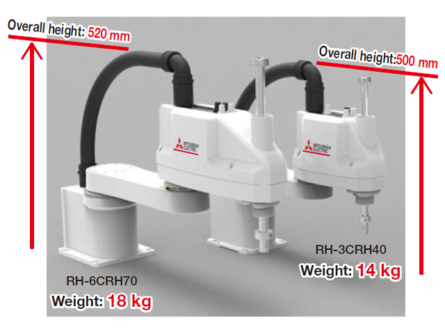 (Maximum height RH-3CRH:500mm/RH-6CRH:520mm) - Light weight robot arms
